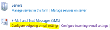 Öffnen Sie die SharePoint Zentraladministration und gehen Sie unter System Settings auf "configure outgoing E-Mails" (Ausgehende E-Mails konfigurieren).